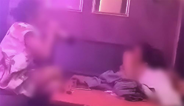 Sementara satu perempuan lainnya tampak tepar, diduga dalam pengaruh alkohol, sambil menenggak minuman keras (miras) dan menyaksikan aksi tersebut.